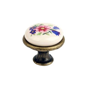 Ручка-кнопка Цветок (бронза/белый)
