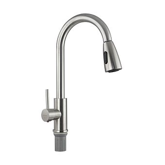 Смеситель д/кухни С - образный излив вытяжной, из нержавеющей стали SUS 304, цвет САТИН арт.13069