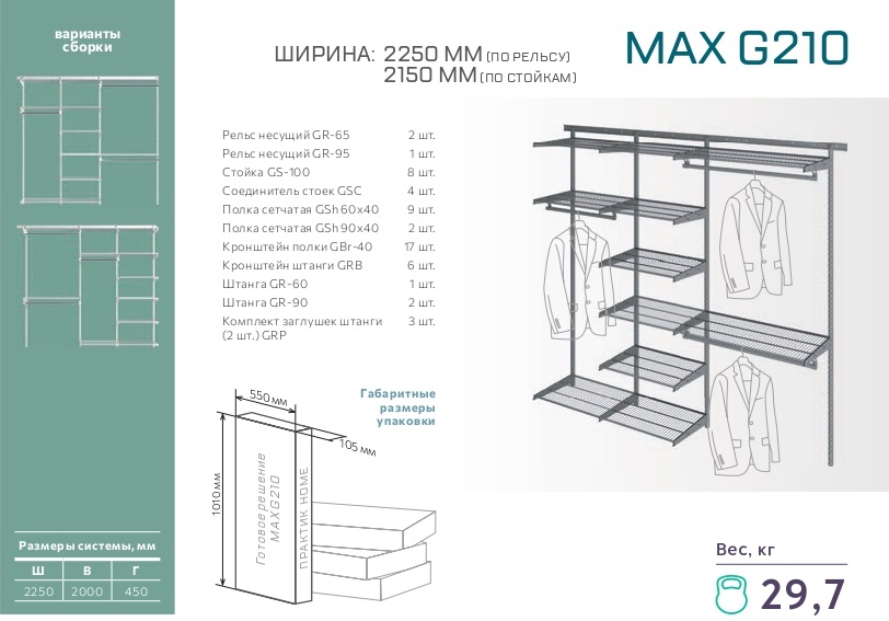 - Саморезы ∅ 5х50 mm (для рельсов) – 17 шт.