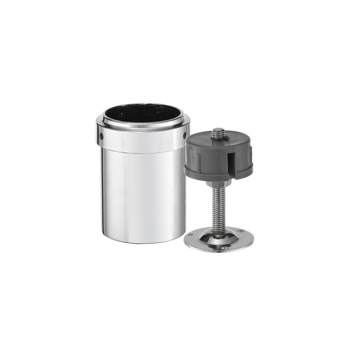 Используется в качестве крепежа для полых труб диаметром 50мм. Изделие предназначено для фиксации верхней части трубы к жесткой поверхности (потолку или полке). Это крепление позволяет регулировать высоту на 5 см за счет колбы.
