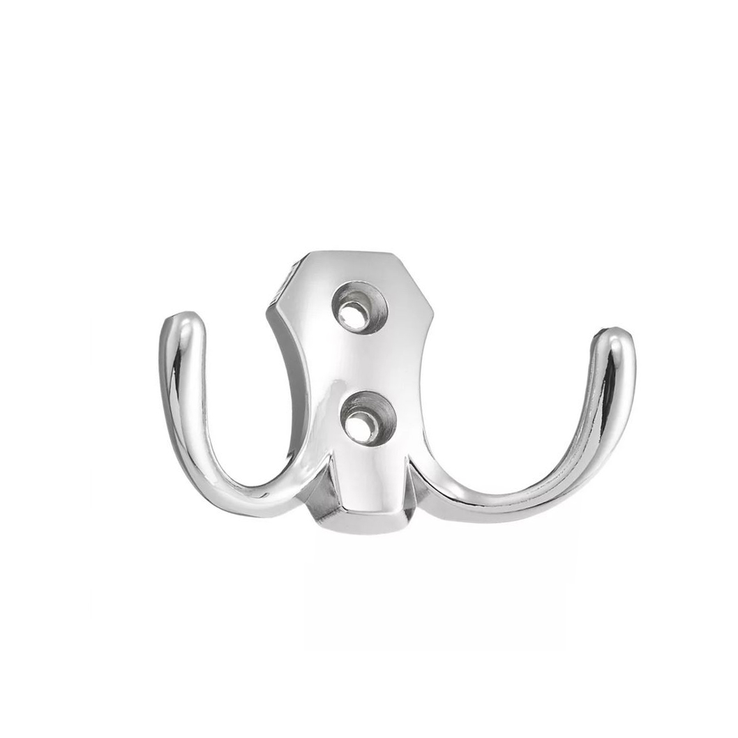 Крючок мебельный 2-х рожковый малый хром