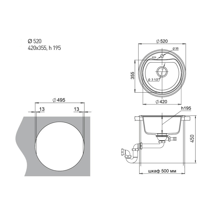 Общий размер мойки