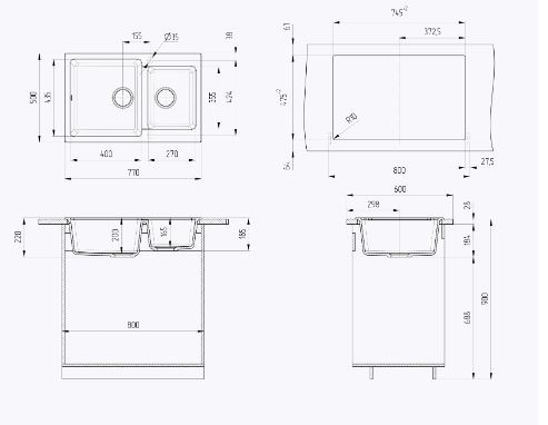Мойка мрамор Ulgran U-505-308 (черный)