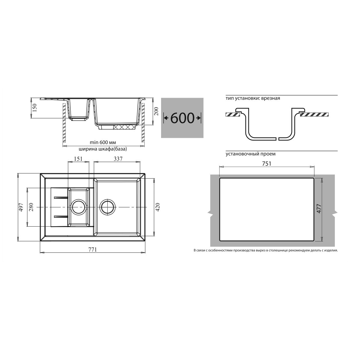 Общий размер мойки