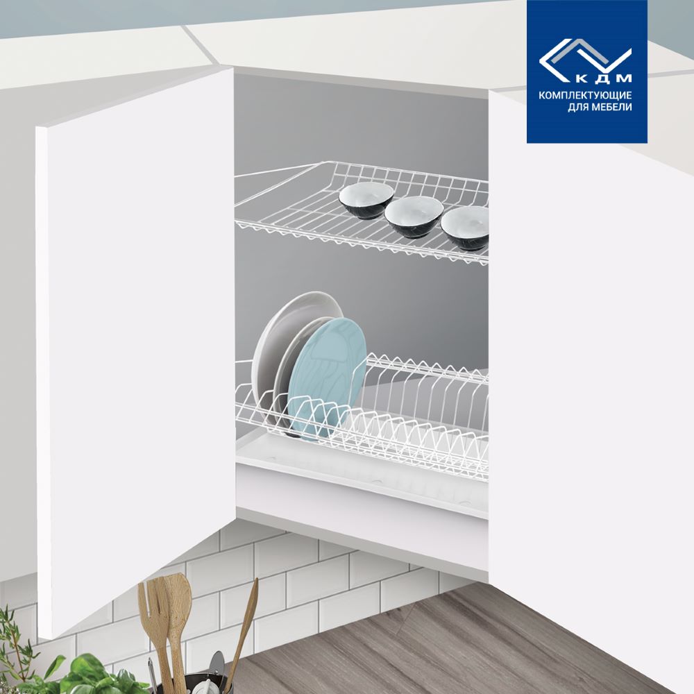 Надежные и удобные полки сушки встраиваются в кухонный шкаф. В комплекте пластиковый поддон.