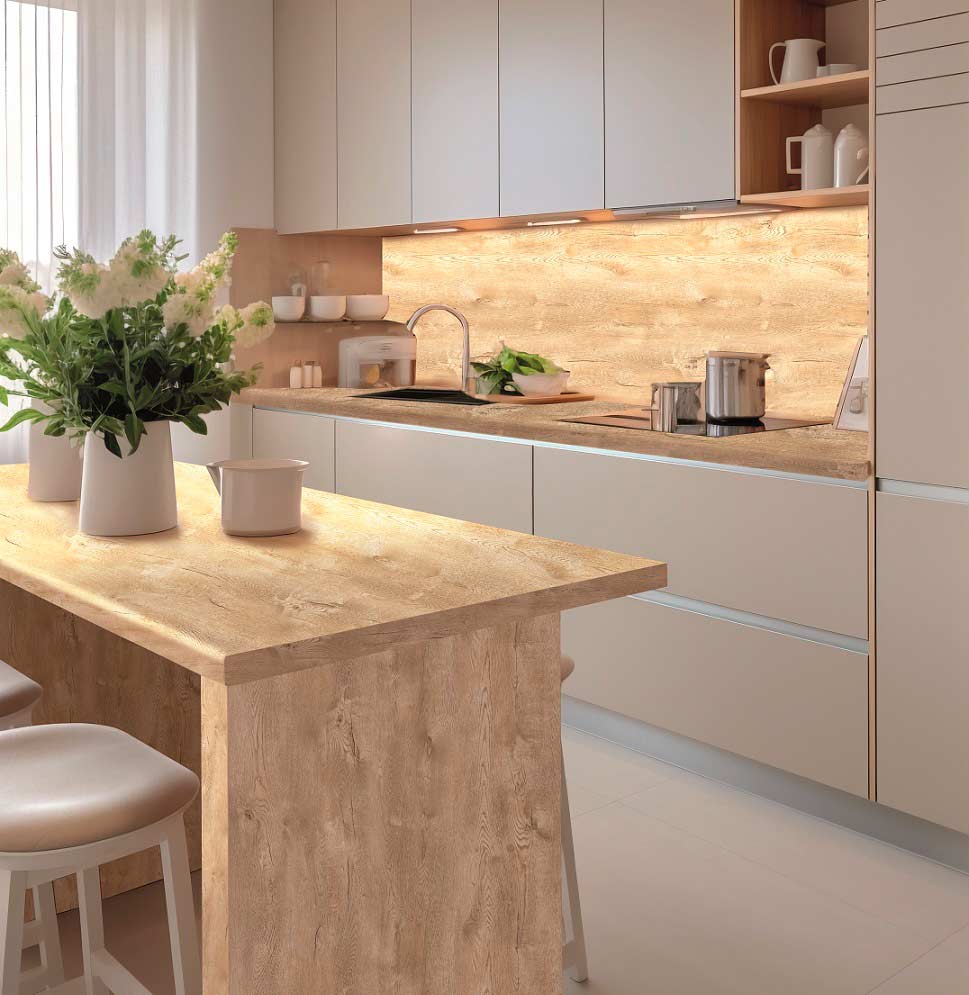 Столешница 3050x600x40 1U 2110 Карпатская Ель //2 обладает влагостойким слоем, который обеспечивает надежную защиту от разбухания столешницы при частом контакте с водой, благодаря качественной герметизации. Столешницы устойчивы к различным бытовым химиям, чернилам, пищевым кислотам и ультрафиолетовому излучению, что сохраняет их внешний вид и функциональность. Также они обладают высокой стойкостью к механическим повреждениям, таким как царапины и сколы и выдерживают высокие температуры без образования следов от горячей посуды.